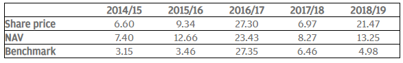 Over any five-year period, factors such as fluctuations in valuation and currency tend to be cancelled out, so that only the intrinsic value represented by earnings growth and dividends remain.