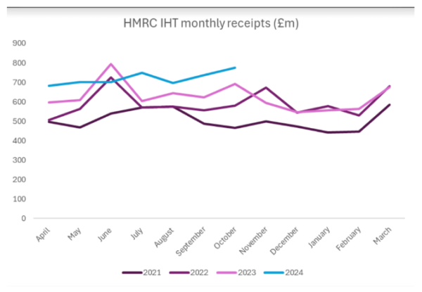 Government inheritance tax (IHT) receipts are on course to be around 40% higher than just three years ago following the first seven months of official data for the current tax year – by Rob Morgan