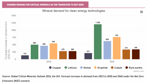 Another key driver of growth is the pressing need to upgrade global energy infrastructure. Copper plays a critical role in power transmission networks and clean energy technologies such as solar panels and wind turbines, with the IEA forecasting that copper demand will double by 2030. In addition, rare earth elements are essential for the magnets used in wind turbines and electric motors.