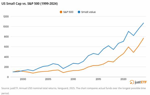 US small value beat the S&P 500 by 39 % over the past 26 years, according to Vanguard fund data.