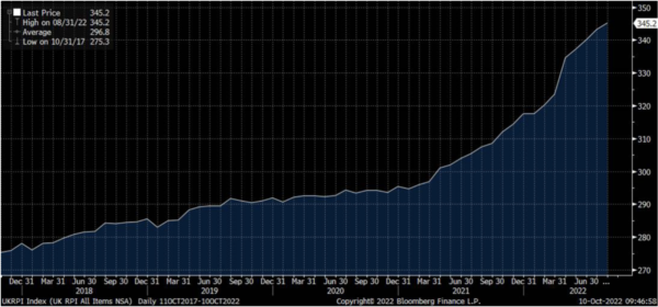 My title was ‘Unmooring expectations’ and my point with where we are today is we still live in a world in which, if you look at the Bloomberg forecast for the UK for next year, the RPI forecast is 3.3%.
