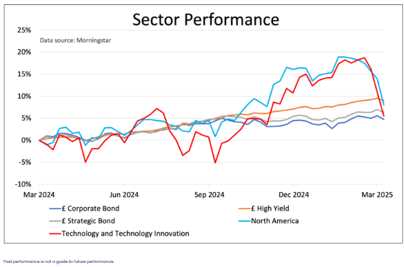 The American stock markets have performed exceptionally well in recent years, and this has been reflected in the returns generated by the North American and Technology sectors. In 2023, the North American sector rose by 16.7%, and last year it made a further 22%. The Technology & Technology Innovation sector did even better, gaining 38.7% in 2023, and 23.5% in 2024.