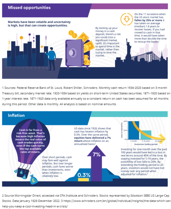 With over 5% interest on cash you may be questioning whether you should risk money on the stock market. So we’ve put together an infographic which makes the case for investing and staying invested in a simple, clear and engaging way.