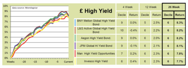Our analysis last week showed that while the leading funds in the £ High Yield sector have delivered gains of more than 8% over six months, their progress has flattened or reversed in recent weeks.